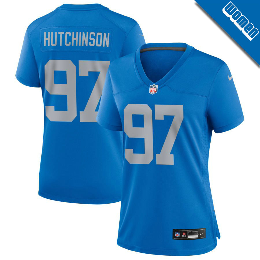 Women's Detroit Lions Blue Alternate #97 Aidan Hutchinson Game Jersey