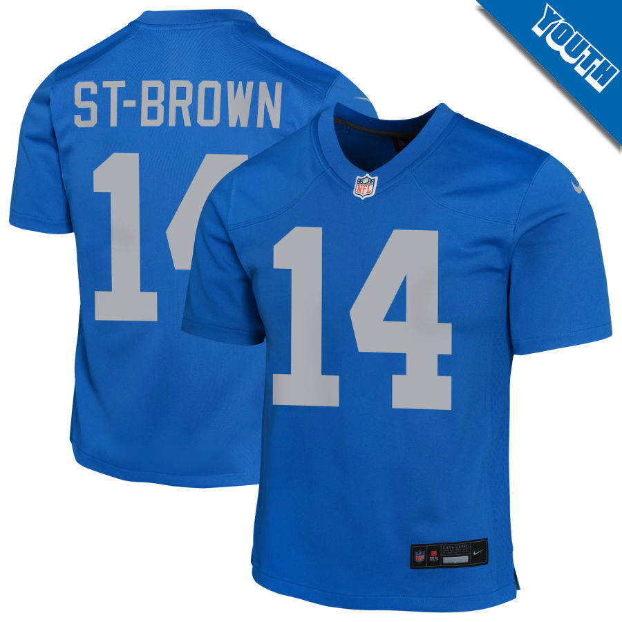 Gear up with the only jersey that truly counts: officially licensed Amon Ra St Brown #14 Detroit Lions Blue Alternate Game Youth Jersey. As Amon-Ra St. Brown steps into the spotlight to command the Lions' high-powered offense this season, represent your player and the roar of Detroit with unmatched legitimacy. Available in all sizes for every Lions supporter, it's the definitive way to embody the passion and promise of this thrilling new era in Detroit football.