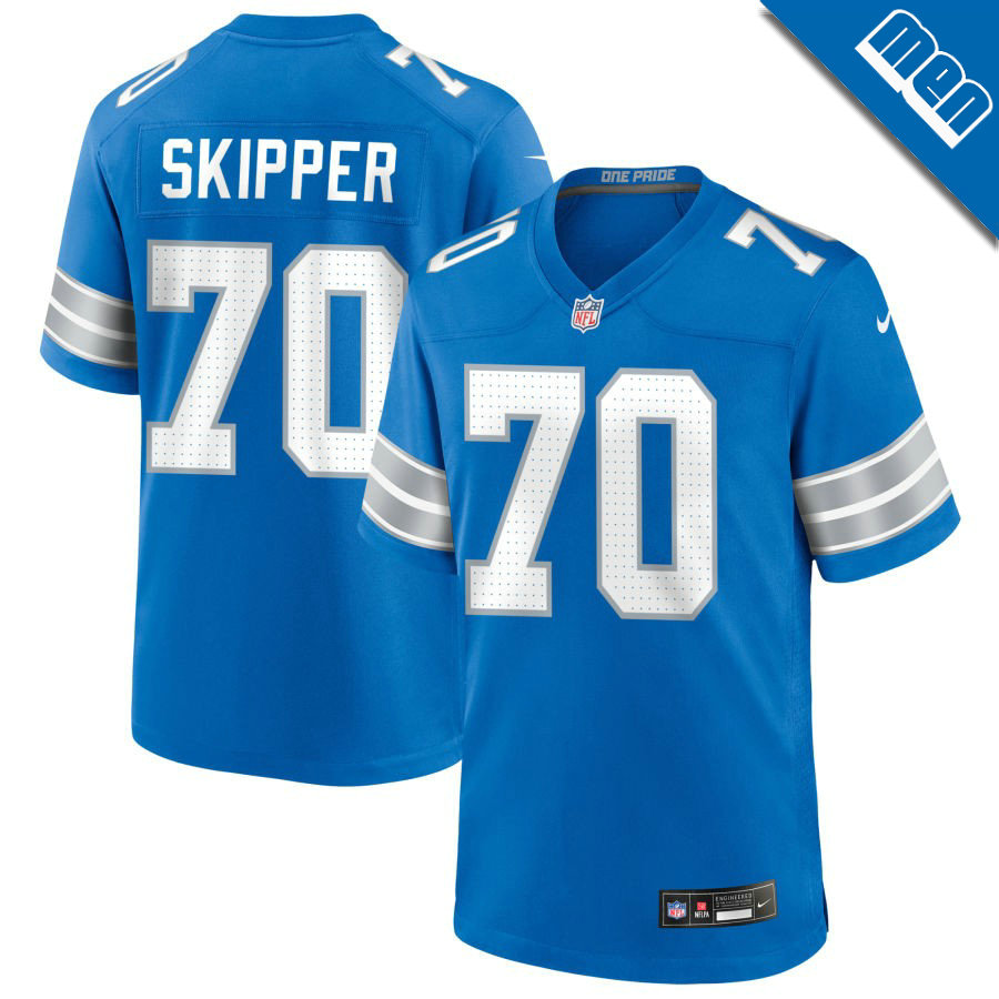 Rock the same colors as your favorite Lions player with this Dan Skipper #70 Detroit Lions Blue Game Men's Jersey. Made with premium breathable fabric featuring sewn-on numbers and team logos, this jersey delivers true gameday authenticity. As Dan Skipper leads the Lions' high-powered offense, show your pride with this must-have collector's item built to last through every touchdown celebration.