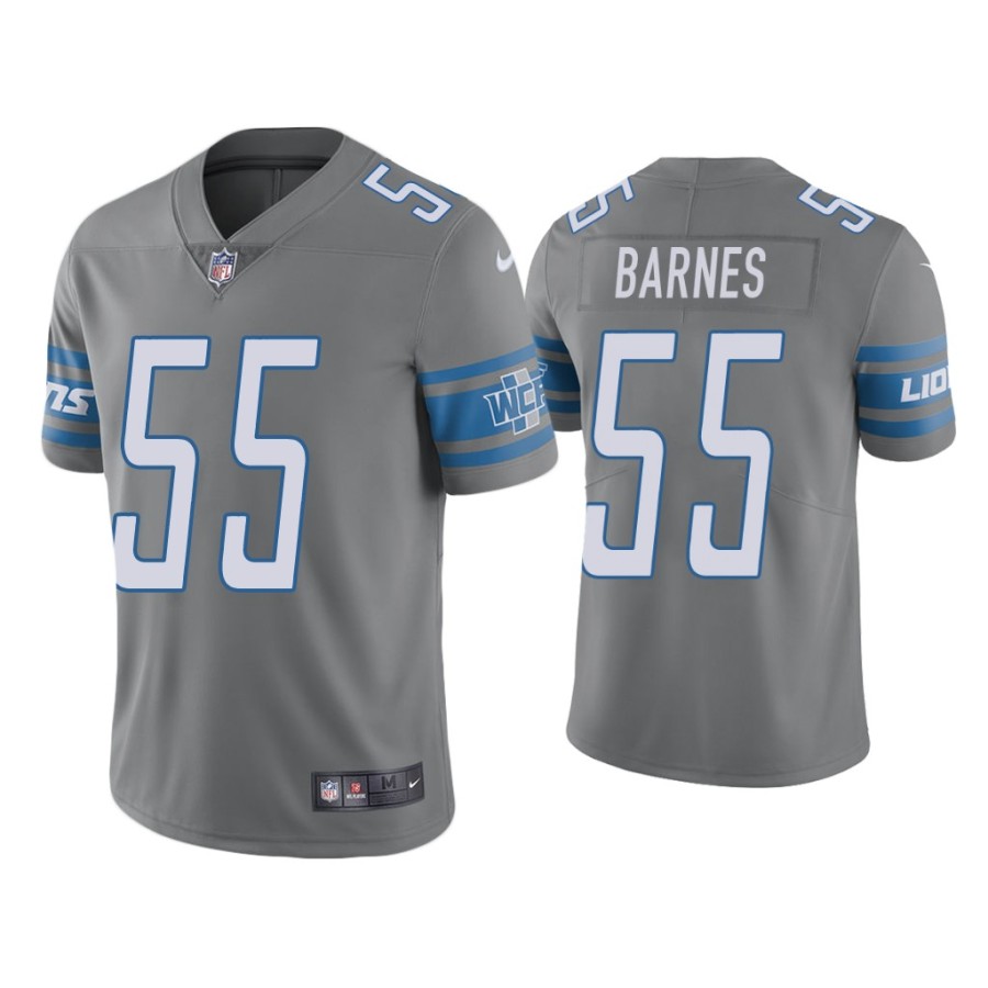 Look and feel like a big leaguer when you wear the cheap Lions Derrick Barnes Steel Color Rush Limited Jersey. It features a comfortable polyester design with quality Detroit Lions and Derrick Barnes embroidered graphics that will quickly make this Derrick Barnes Jersey one of your favorites.