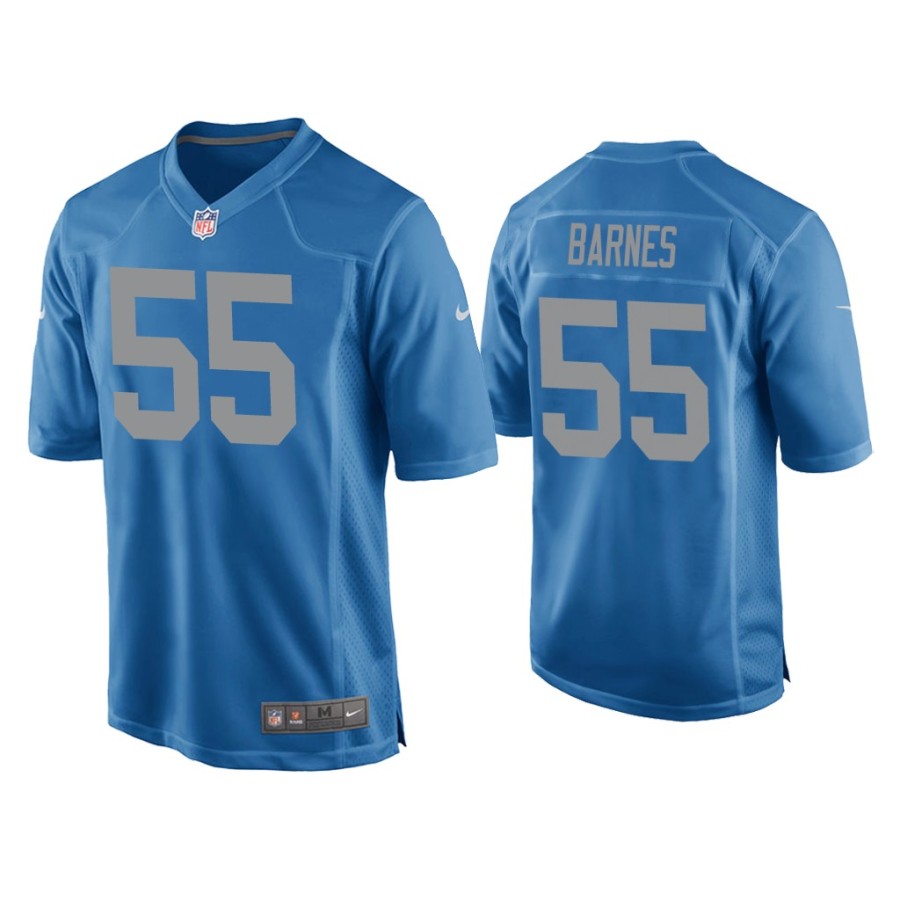 • Men Detroit Lions #55 Derrick Barnes Blue Throwback Game Jersey