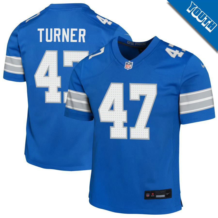 Gear up with the only jersey that truly counts: officially licensed Ezekiel Turner #47 Detroit Lions Blue Game Youth Jersey. As Ezekiel Turner steps into the spotlight to command the Lions' high-powered offense this season, represent your player and the roar of Detroit with unmatched legitimacy. Available in all sizes for every Lions supporter, it's the definitive way to embody the passion and promise of this thrilling new era in Detroit football.