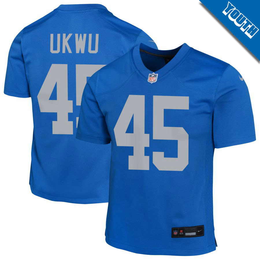 Youth Detroit Lions Blue Alternate #45 Isaac Ukwu Game Jersey