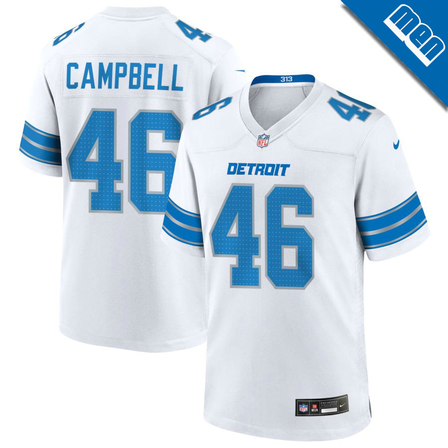 Rock the same colors as your favorite Lions player with this Jack Campbell #46 Detroit Lions White Game Men's Jersey. Made with premium breathable fabric featuring sewn-on numbers and team logos, this jersey delivers true gameday authenticity. As Jack Campbell leads the Lions' high-powered offense, show your pride with this must-have collector's item built to last through every touchdown celebration.