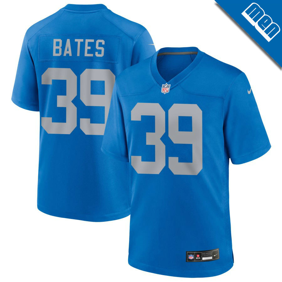 Men's Detroit Lions Blue Alternate #39 Jake Bates Game Jersey