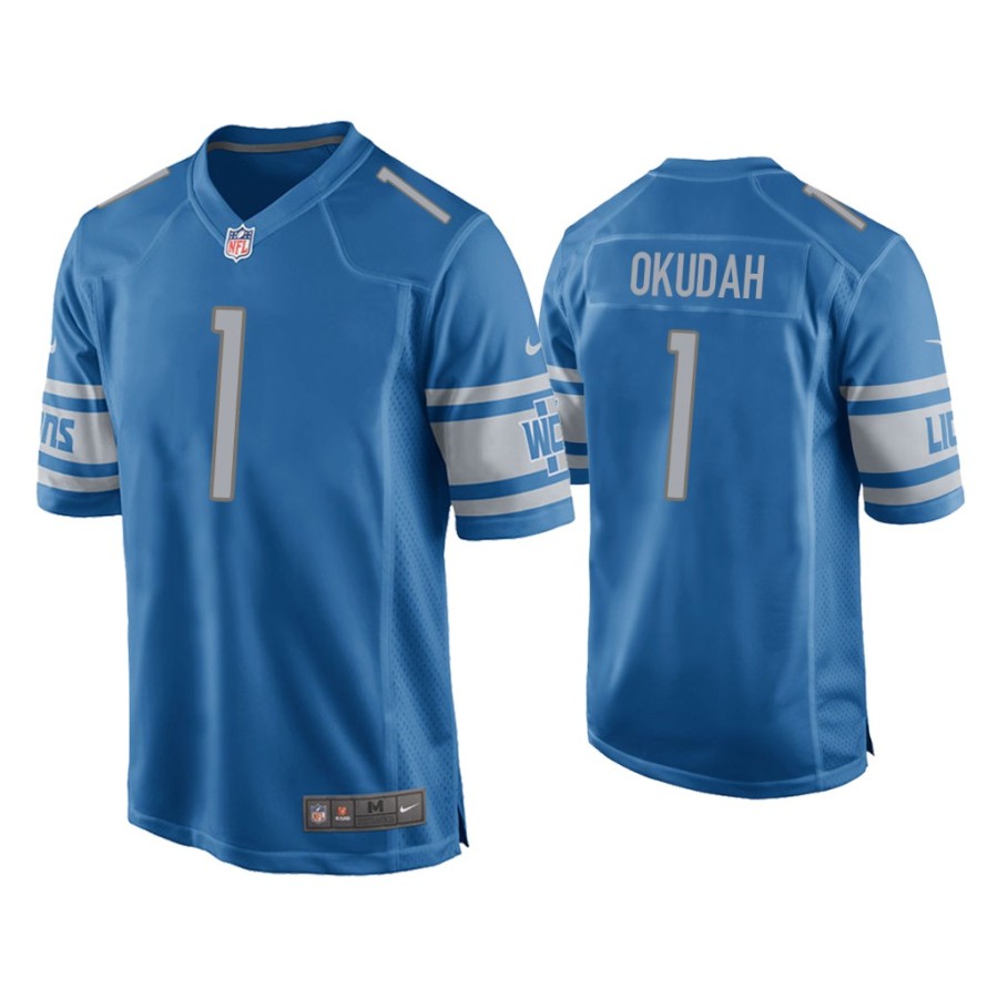Men Detroit Lions #1 Jeff Okudah Blue Game Jersey