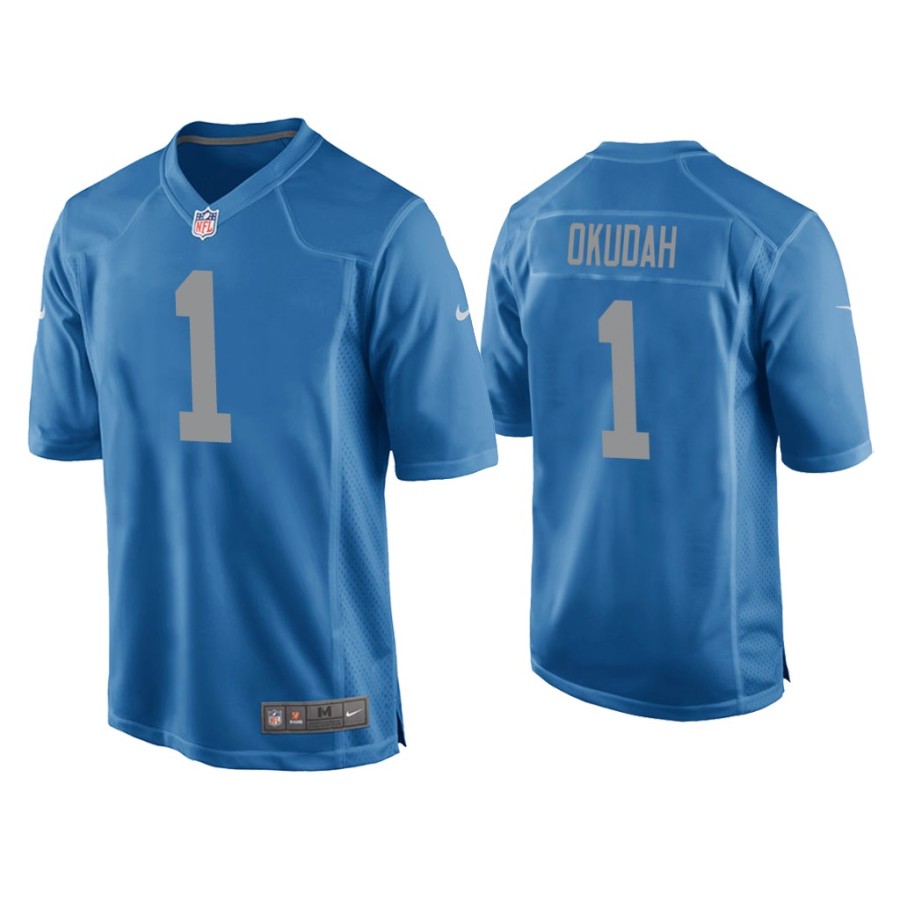 Men Detroit Lions #1 Jeff Okudah Blue Throwback Game Jersey