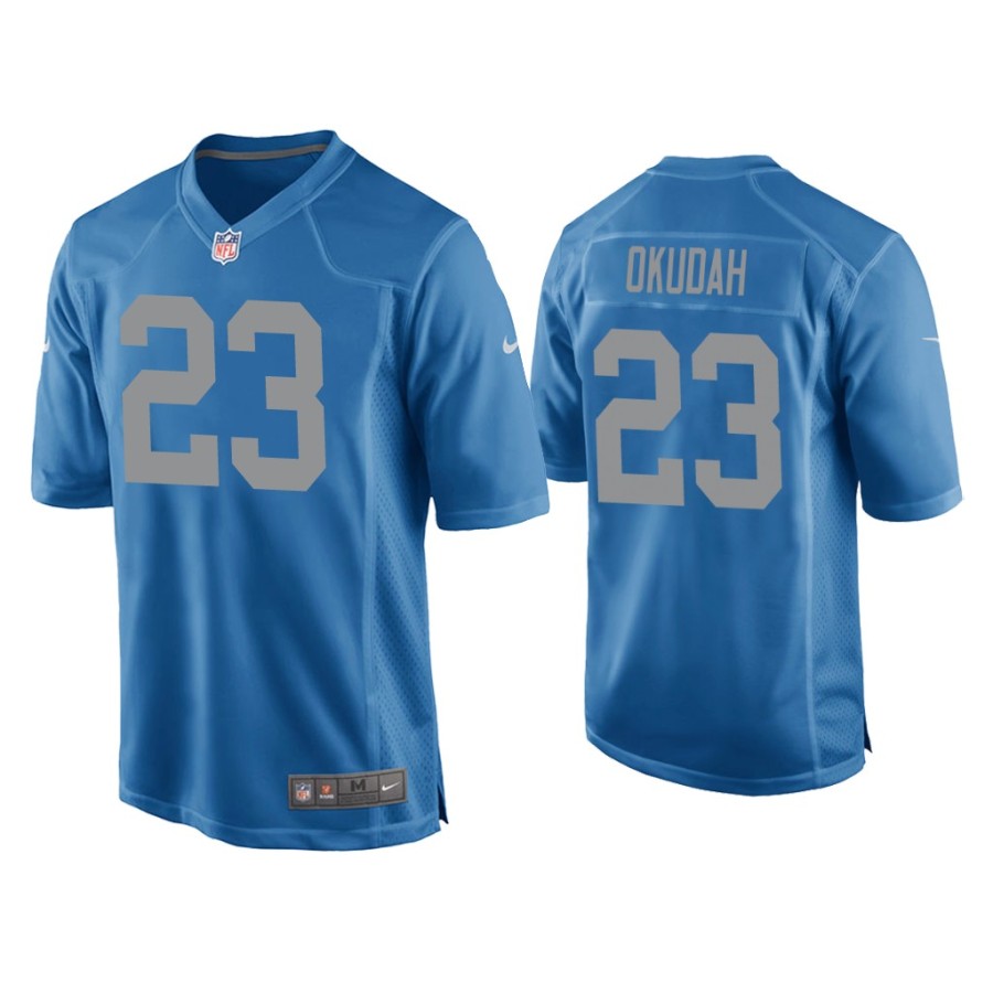 Men Detroit Lions #23 Jeff Okudah Blue Throwback Game Jersey