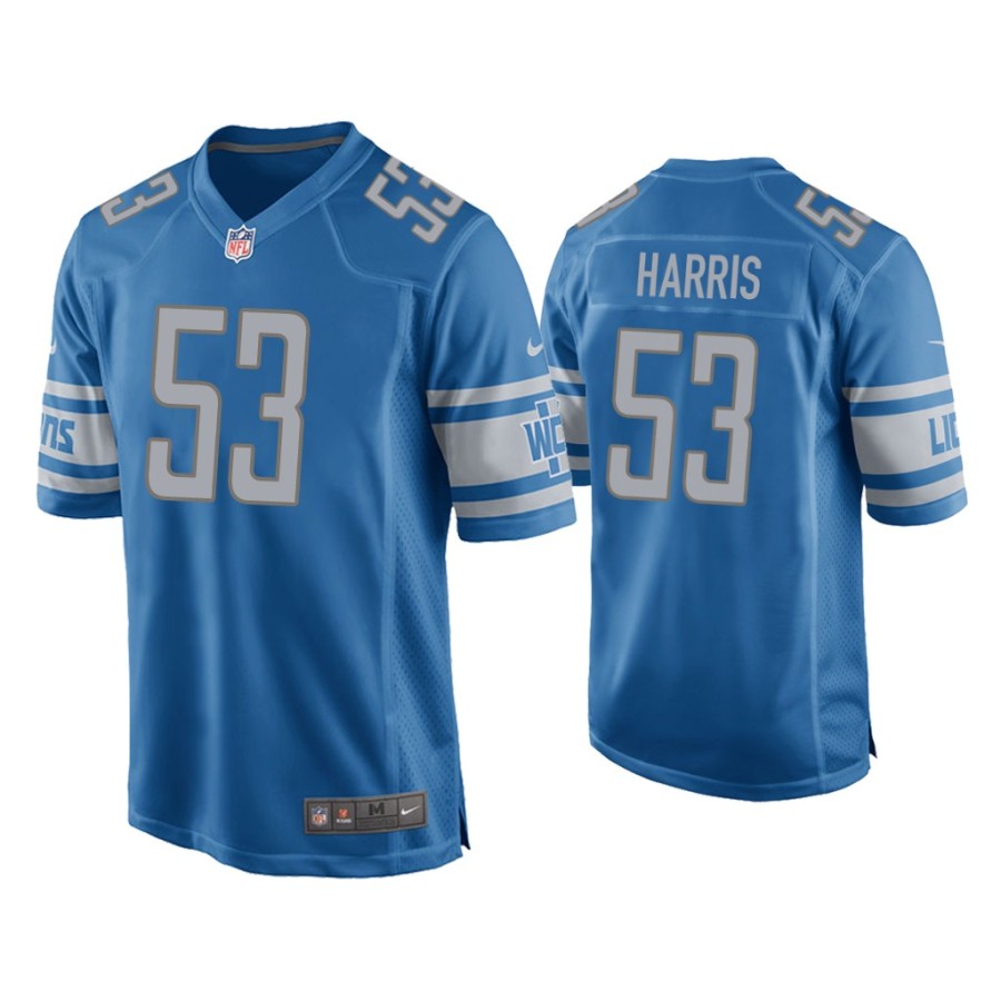 Men Detroit Lions #53 Charles Harris Blue Game Jersey