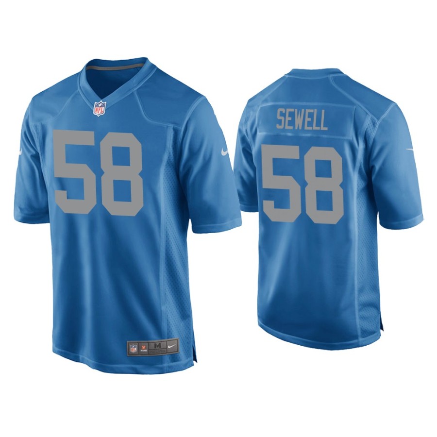 Men Detroit Lions #58 Penei Sewell Blue Throwback Game Jersey