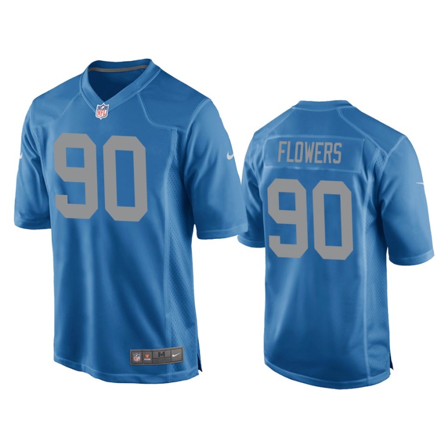 Men Detroit Lions #90 Trey Flowers Blue Throwback Game Jersey