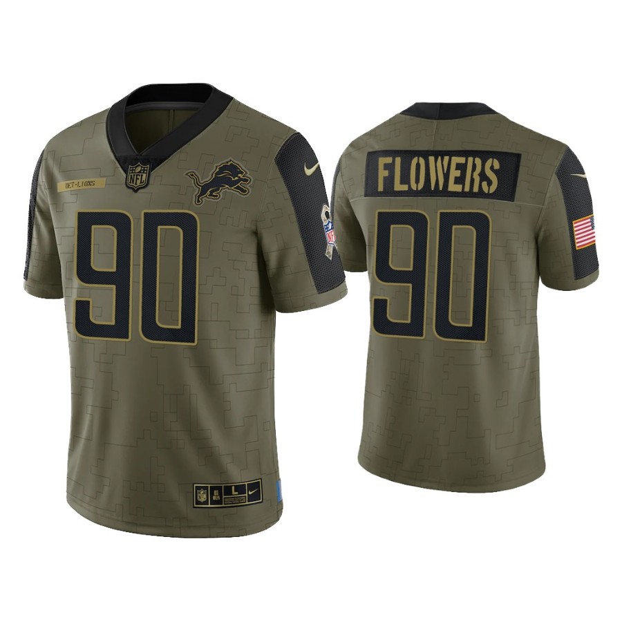 Men Detroit Lions #90 Trey Flowers Olive 2021 Salute To Service Limited Jersey