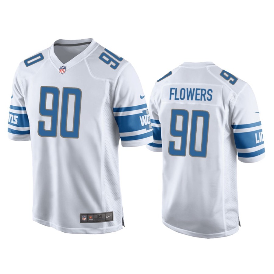 Men Detroit Lions #90 Trey Flowers White Game Jersey