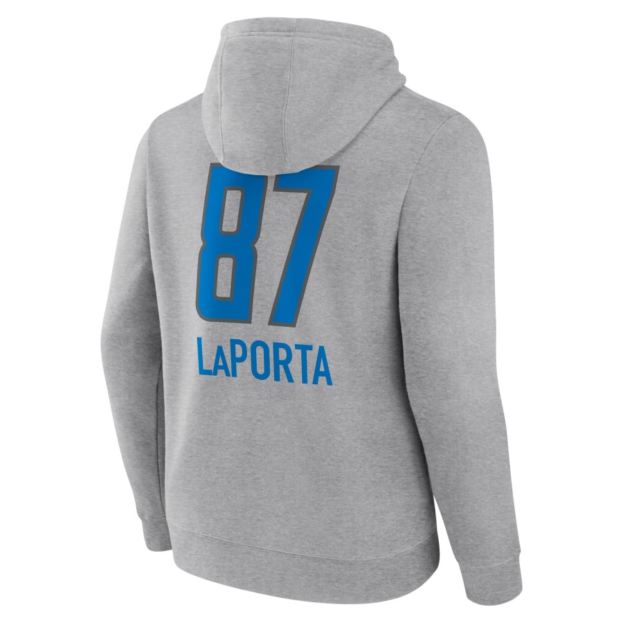 Sam LaPorta Detroit Lions Team Wordmark Player Pullover Hoodie - Gray