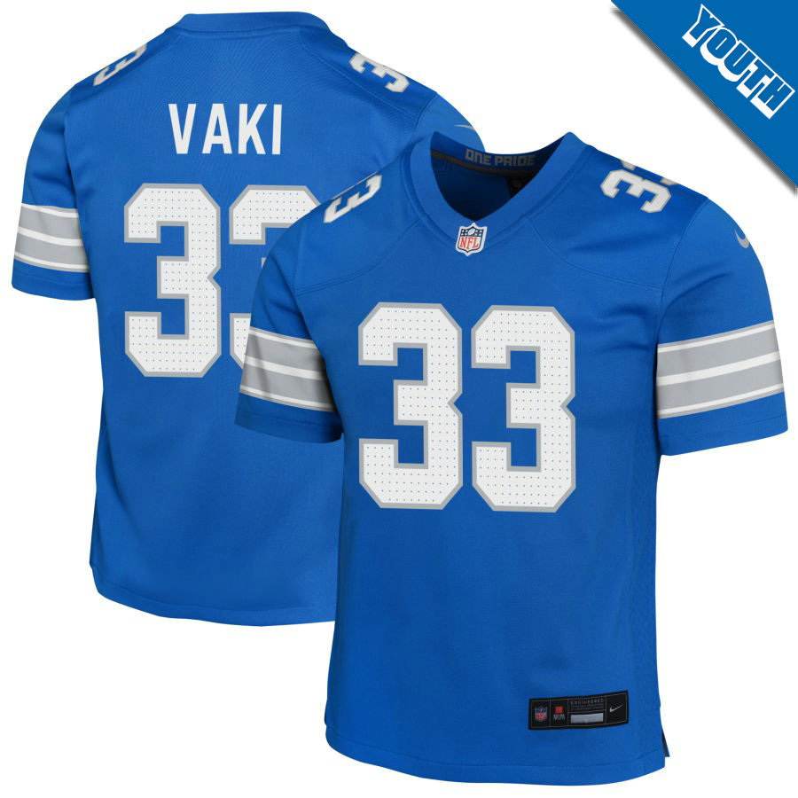Gear up with the only jersey that truly counts: officially licensed Sione Vaki #33 Detroit Lions Blue Game Youth Jersey. As Sione Vaki steps into the spotlight to command the Lions' high-powered offense this season, represent your player and the roar of Detroit with unmatched legitimacy. Available in all sizes for every Lions supporter, it's the definitive way to embody the passion and promise of this thrilling new era in Detroit football.