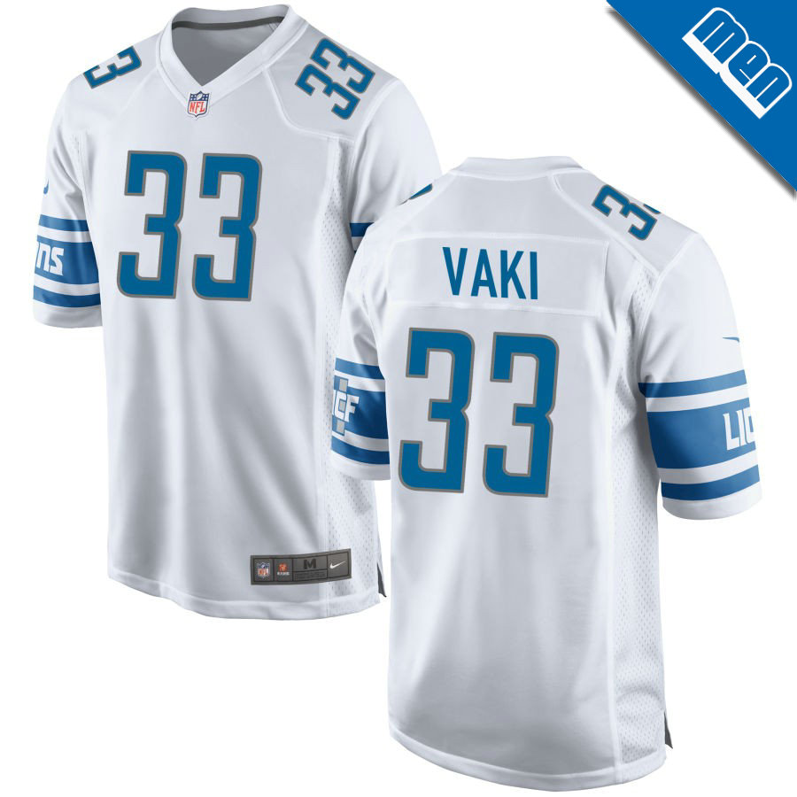 Men's Detroit Lions White #33 Sione Vaki Game Jersey