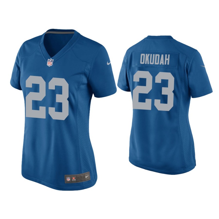 Women Detroit Lions #23 Jeff Okudah Blue Throwback Game Jersey