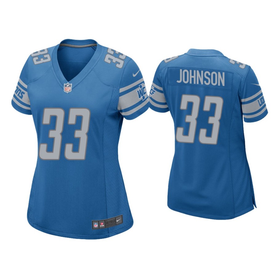 • Women Detroit Lions #33 Kerryon Johnson Blue Game Jersey