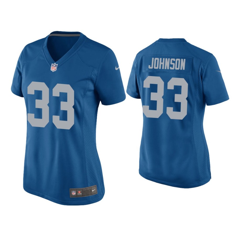 Women Detroit Lions #33 Kerryon Johnson Blue Throwback Game Jersey