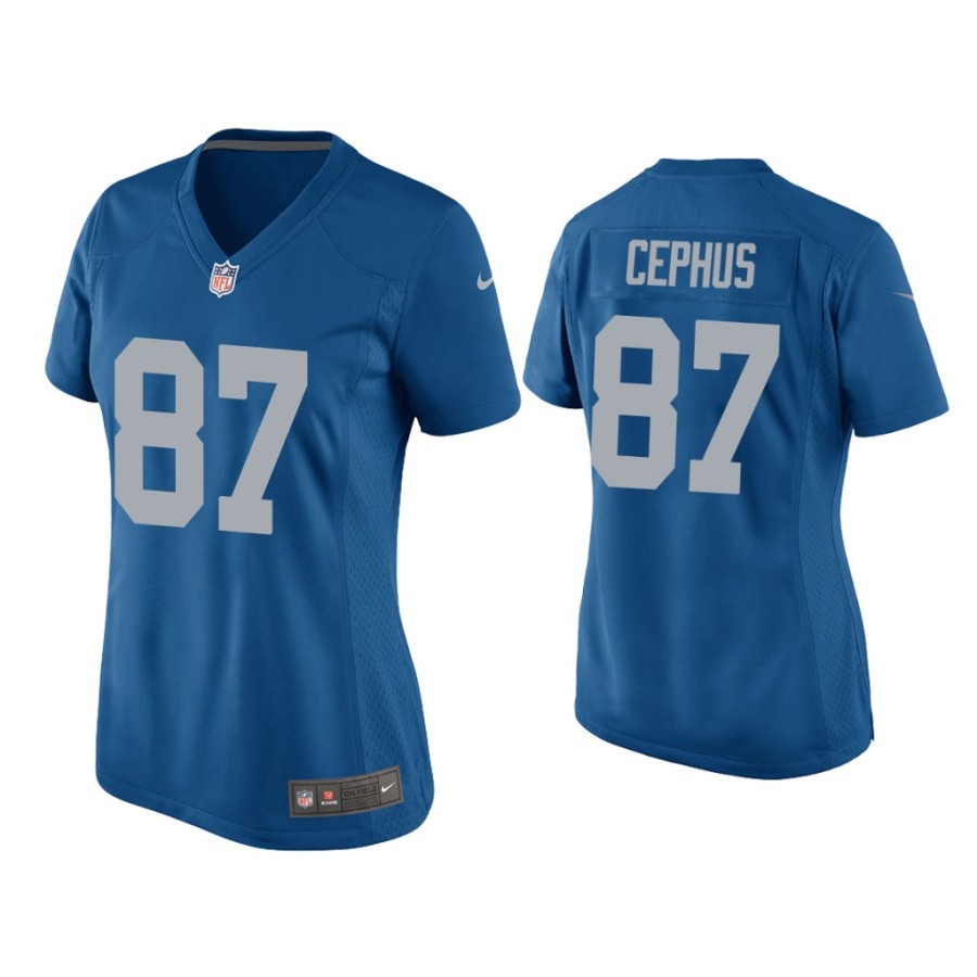 Women Detroit Lions #87 Quintez Cephus Blue Throwback Game Jersey