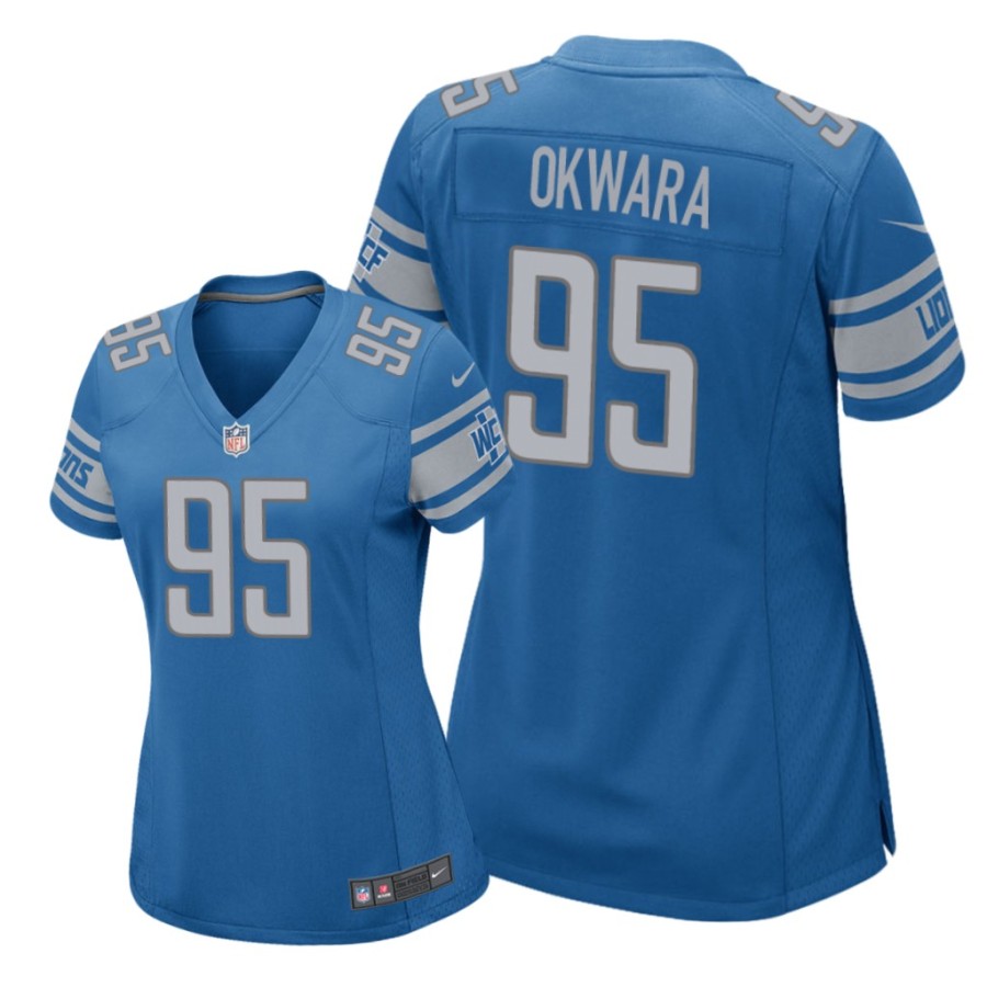 Women Detroit Lions #95 Blue Romeo Okwara Nike Game Jersey