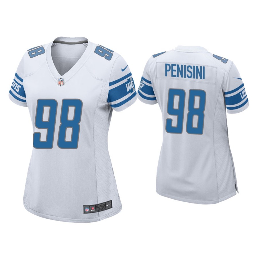 Women Detroit Lions #98 John Penisini White Game Jersey